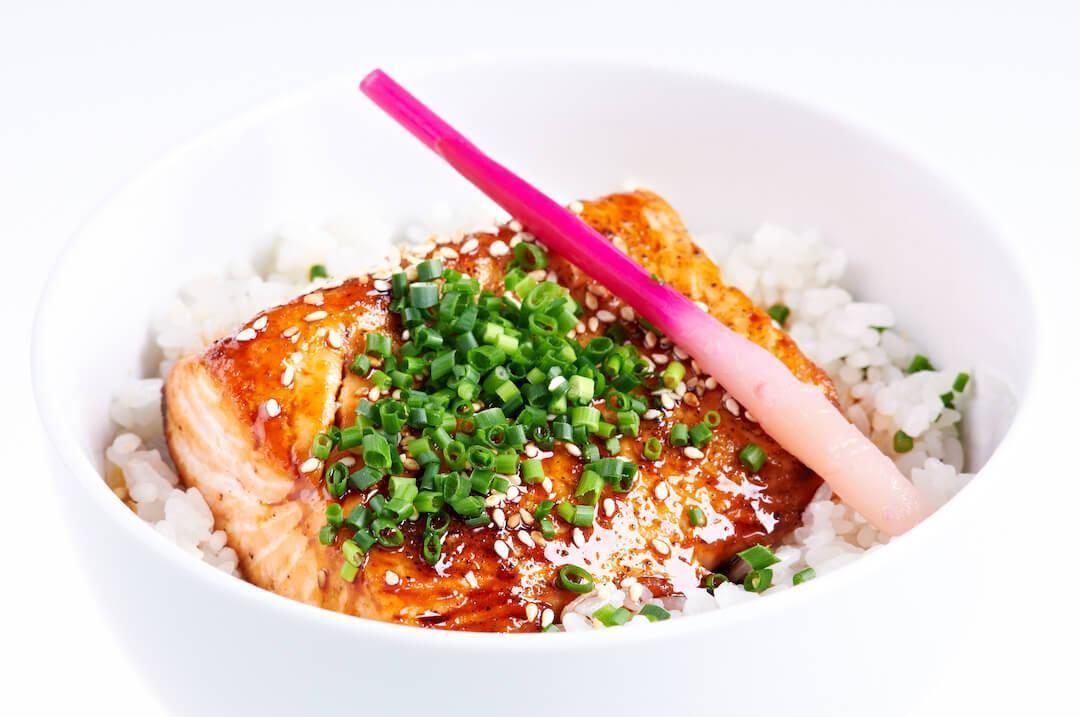 Grillowany łosoś donburi